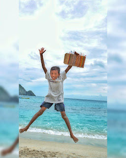 Aku menikmati sekali siangku bersama mereka. Tersenyum sendiri. Melihat dan mendengar mereka saling berceloteh bercerita tentang keseharian mereka, diselingi membuat gelang yang kemudian dijual untuk menambah uang saku mereka. Melihat dan mendengar mereka saling bercanda berebutan merayuku untuk membeli dagangan mereka. Aku mengajukan syarat; Pertama: Aku baru mau membeli semua gelang dagangan mereka dengan catatan harus buatan tangan mereka sendiri. Kedua: Penjual pertama harus mau kuminta berpose melompat setinggi mungkin untuk ku abadikan di kameraku. Yang lainnya ku ajak untuk foto bersama, untuk mengenang keceriaan mereka siang itu.